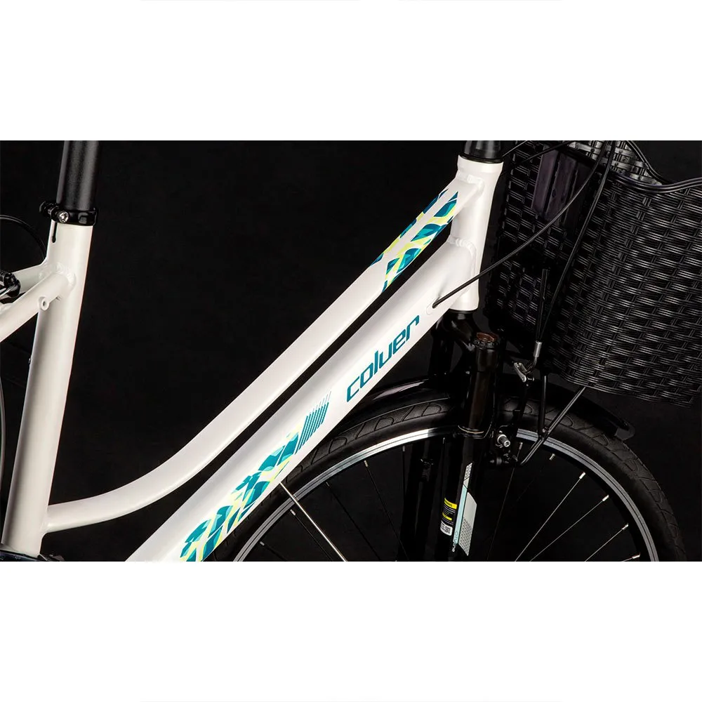 Frame: aluminium, city confort geometry, 1-1/8 semi-integrated headset, internal cable routing and replaceable hanger